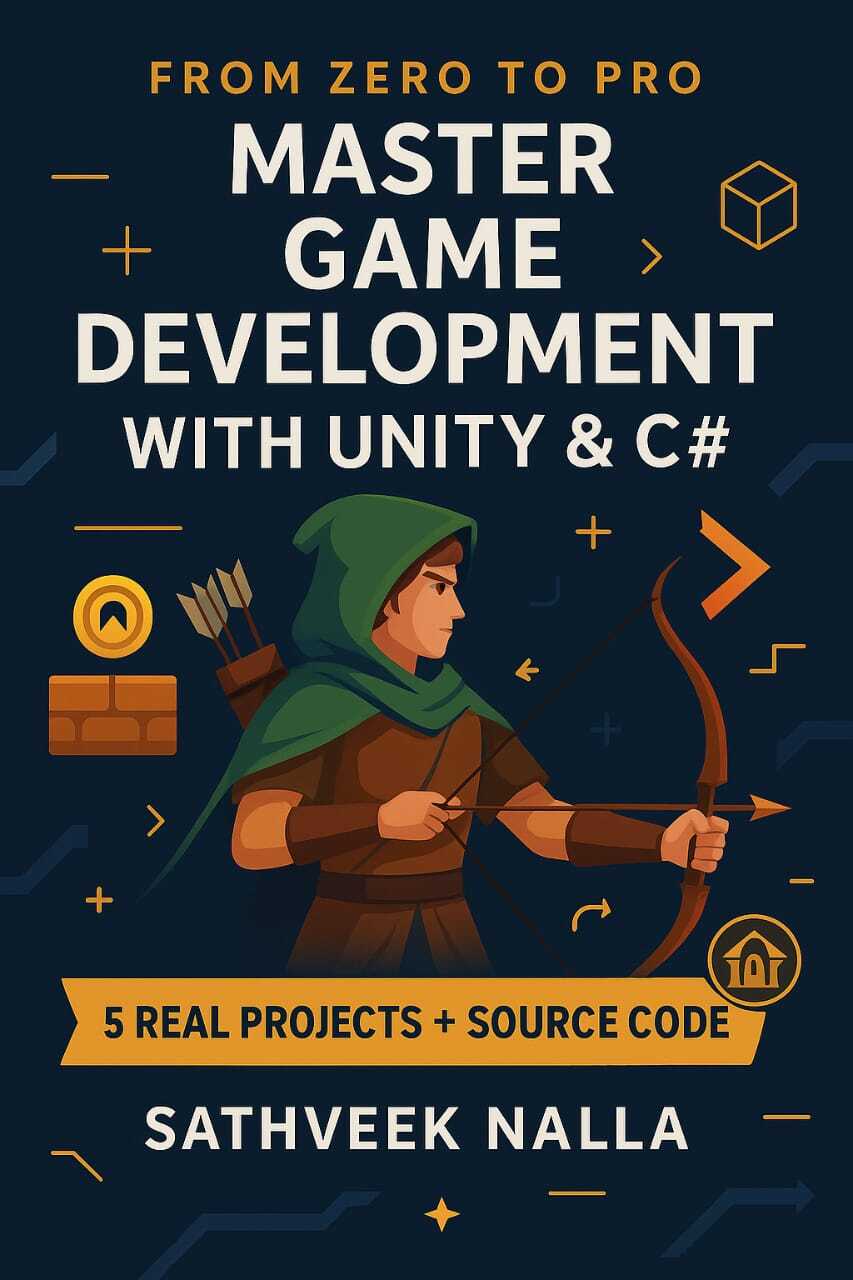 Whether you're a total beginner or a curious coder, this eBook takes you step-by-step into the world of professional game development using the Unity engine and C# — the #1 game dev stack today.
